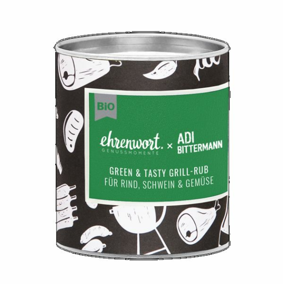 Gemeinsam mit dem Grillweltmeister Adi Bittermann wurden für Sie Grill-Rubs im limitierten Design entwickelt. BIO Green & Tasty Grill-Rub für Rind, Schwein & Gemüse liefert mit Lorbeerblättern, Oregano und Koriandersamen eine vollmundige Kräuterwürze. Orangenschalen sorgen für eine leicht fruchtige Note. Die angenehme Schärfe kommt hier von Schwarzem Pfeffer. Vor dem Grillen* vorsichtig auf das Grillgut auftragen. Da bleibt uns nur zu sagen: an die Griller, fertig, los!